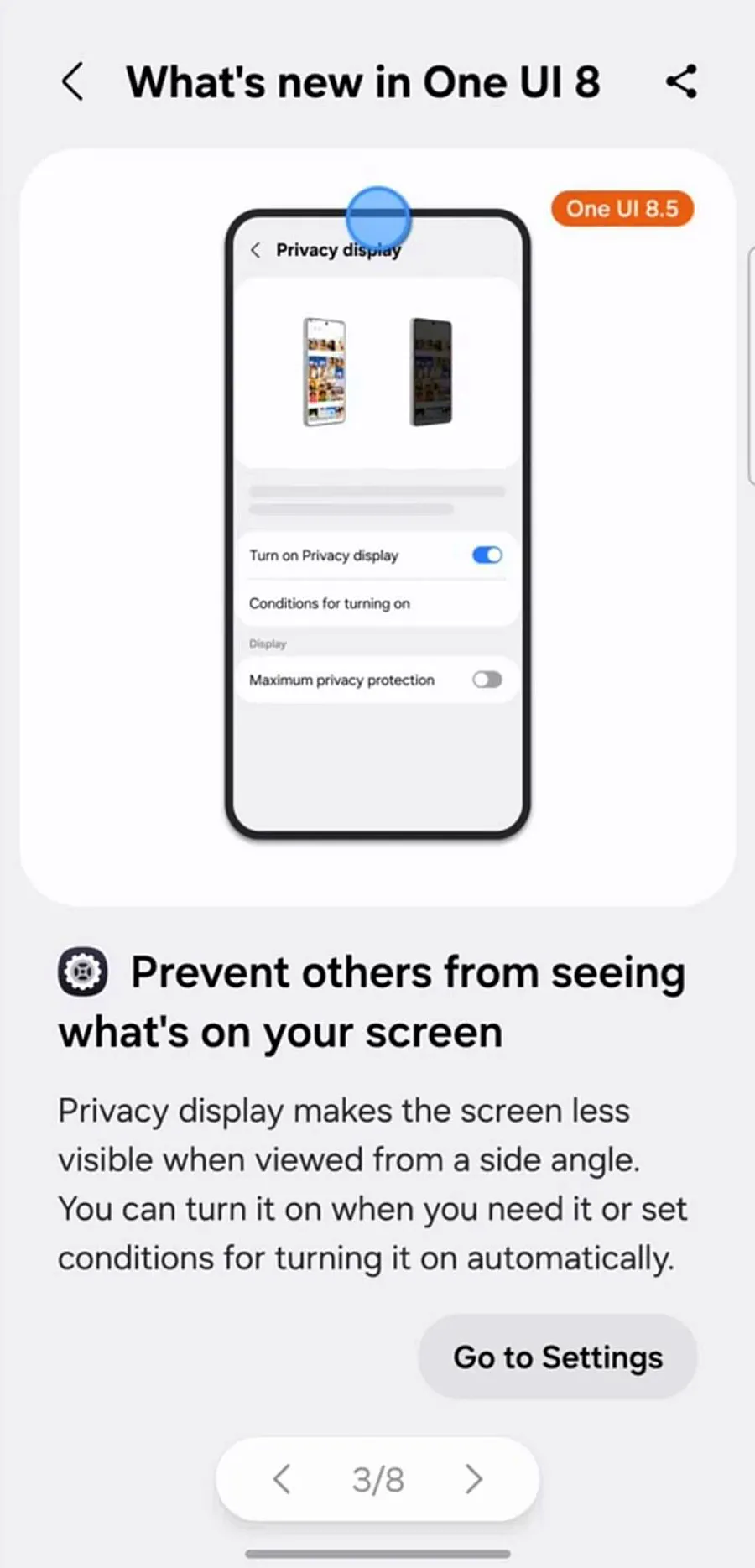 인공지능으로 패널 픽셀을 직접 제어해 시야각을 조절한다고 합니다.이번에 새롭게 업그레이드 되는 원UI 8.5 에서 적용이 되는 기능인데 벌써부터 기대가 상당히 큽니다.